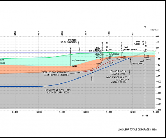 Following the analysis of geotechnical data, several techniques were considered and directed boring proved to be the most optimal technique. The choice of directed boring was confirmed by the feasibility study and risk analysis.